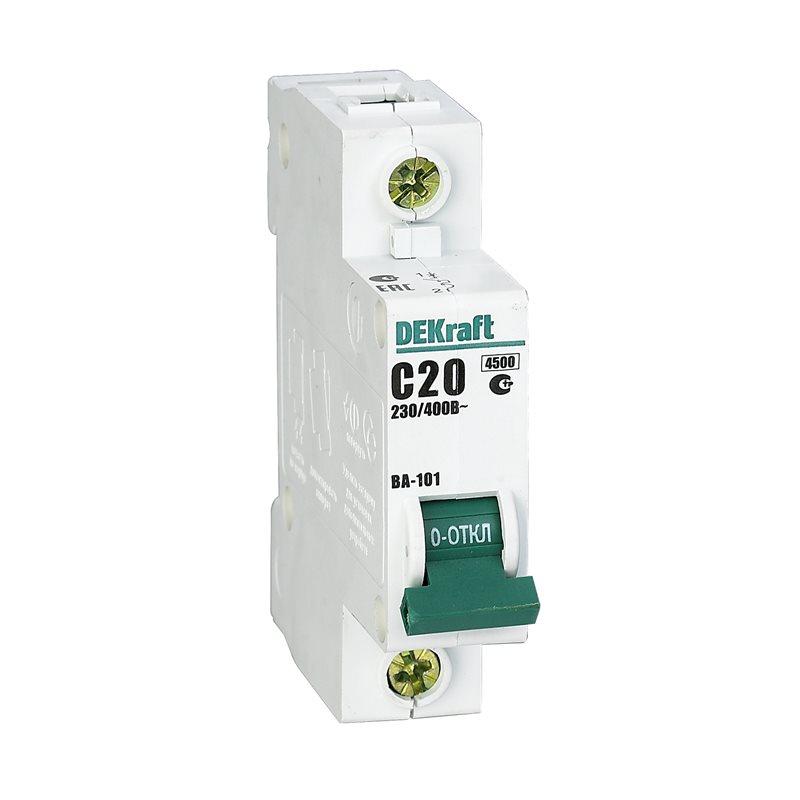 Однополюсный модульный автоматический выключатель DEKraft серии BA-101 с характеристикой срабатывания С. Применяется в жилых помещениях, на коммерческих и промышленных объектах.